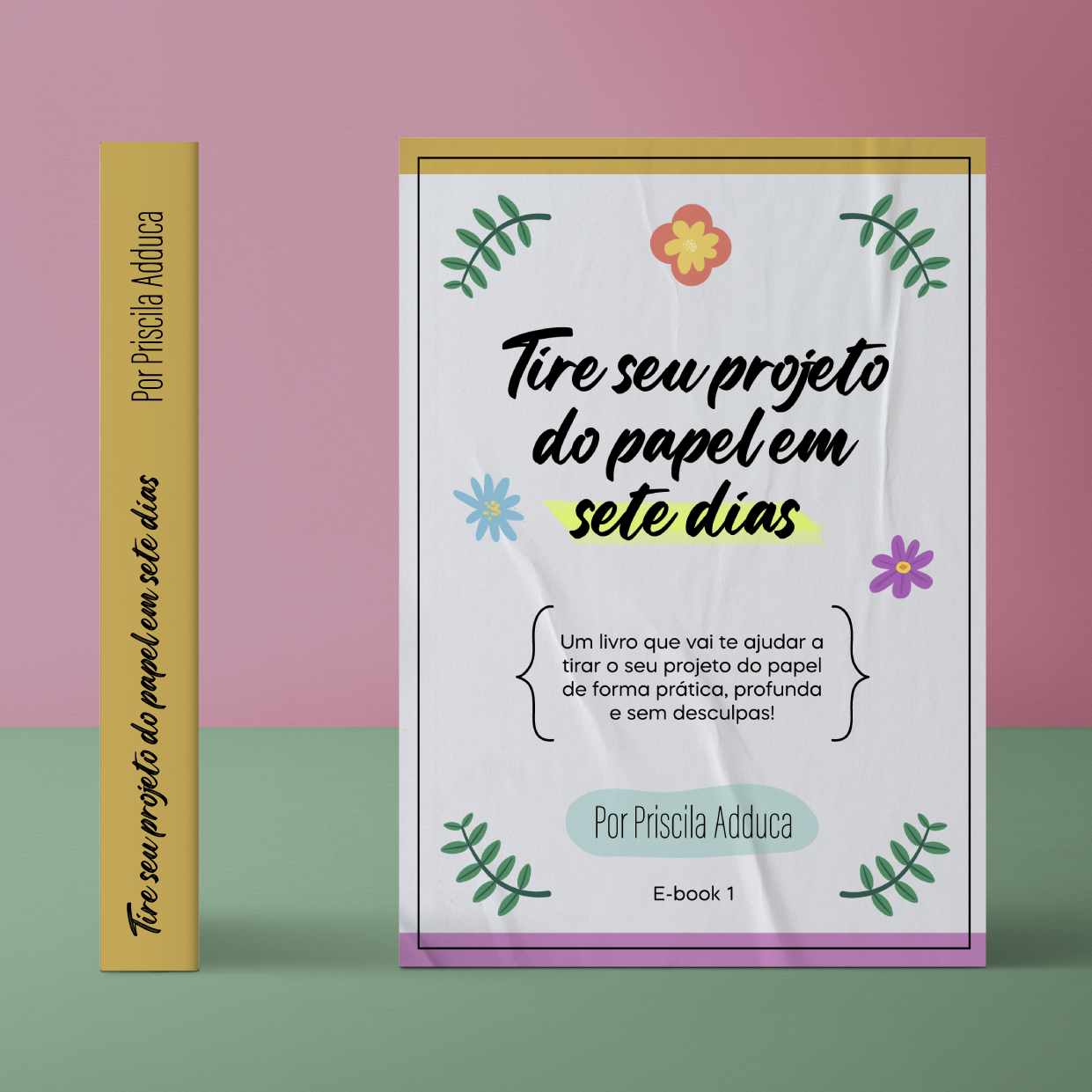Design Editorial do e-book "Tire seu projeto do papel em sete dias", escrito por Priscila Adduca, fundadora do projeto "Mulheres que Inspiram"